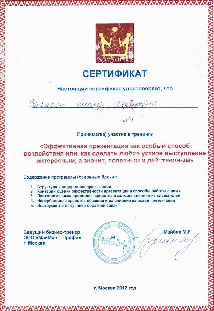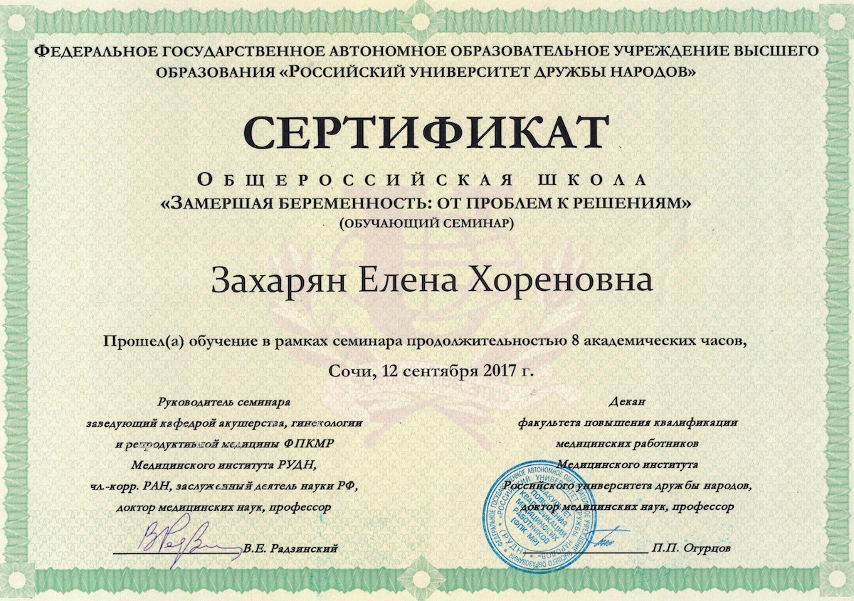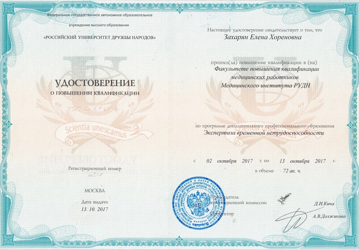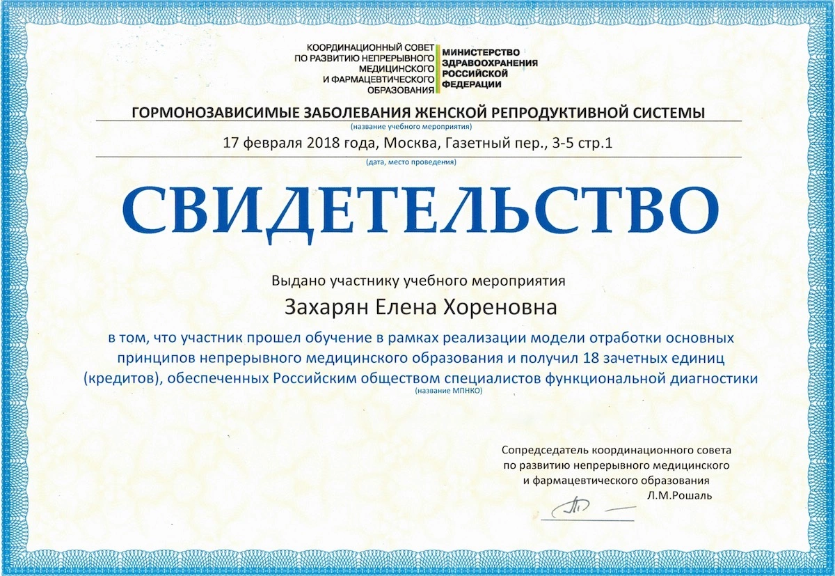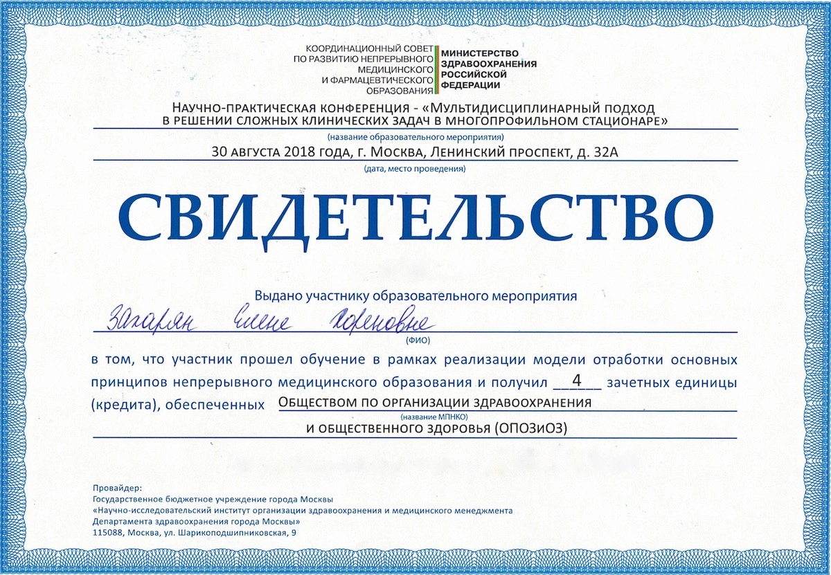 Даже будучи отличным специалистом, Елена Хореновна не упускает возможности обновить и усовершенствовать свои профессиональные навыки. Ежегодные курсы повышения квалификации, участие в международных медицинских конференциях и обмен опытом с коллегами, – этот врач никогда не останавливается на достигнутом.